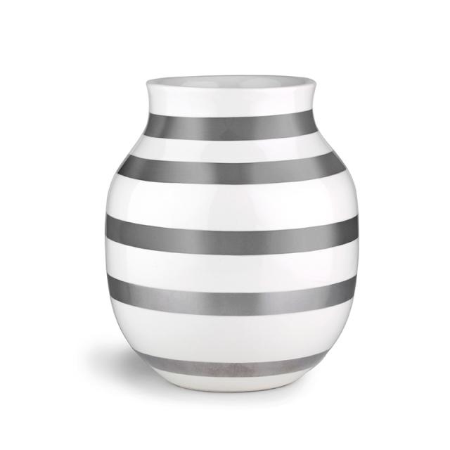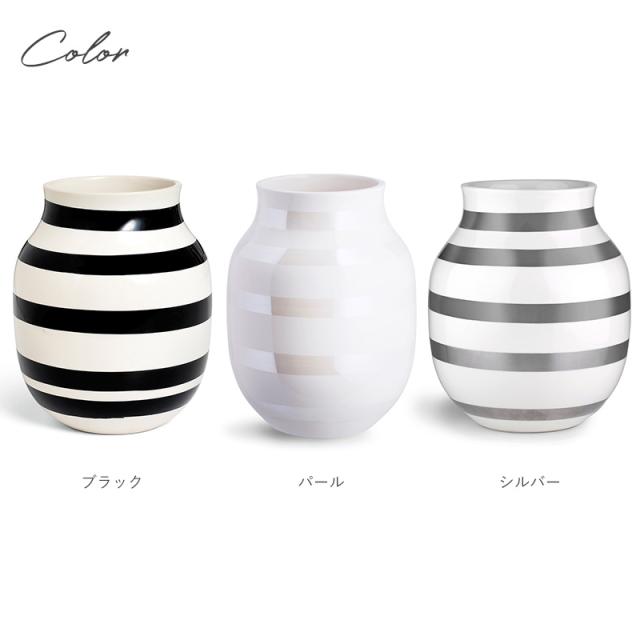 KAHLER ケーラー Omaggio ベース H20cm 花瓶フラワーベース/おしゃれ/陶器/20cm/ボーダー/ブラック/パール/シルバー/オマジオ/