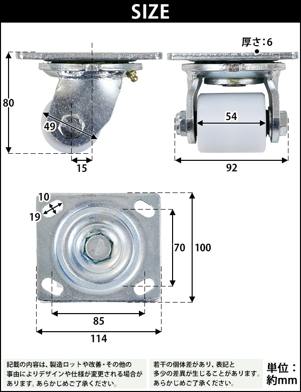 | 材質 | 亜鉛メッキスチール(金具)、ナイロン(車輪) |
