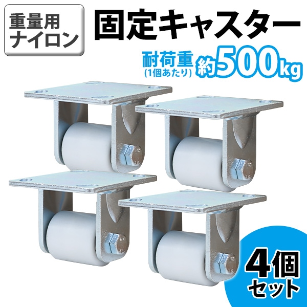 キャスター 固定キャスター 重量用 ナイロン製 4個セット 重量用キャスター 耐荷重約500kg(1個あたり) 車輪直径約49mm 幅約54mm 固定車 ナイロン車輪 工場 倉庫 作業 運搬 cstrnyfin50r4p