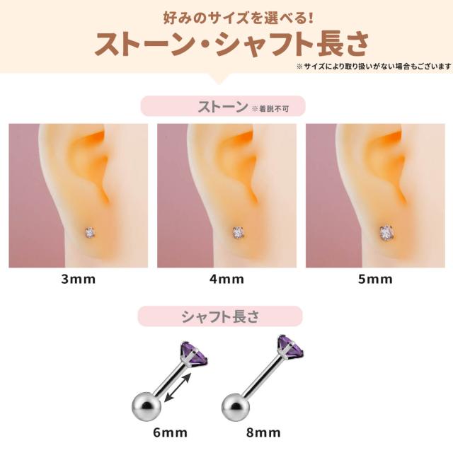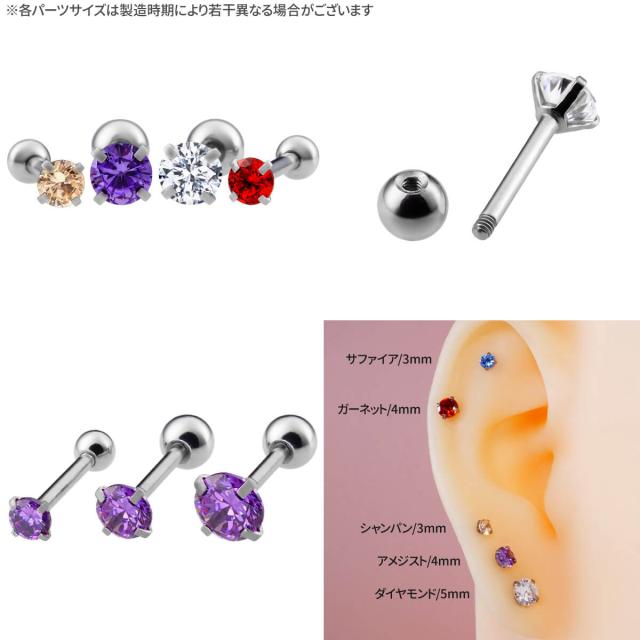 立爪 CZ ジュエル ストレートバーベル 18G 20G サージカルステンレス ヘリックス トラガス 軟骨ピアス ボディピアス 金属アレルギー 対応