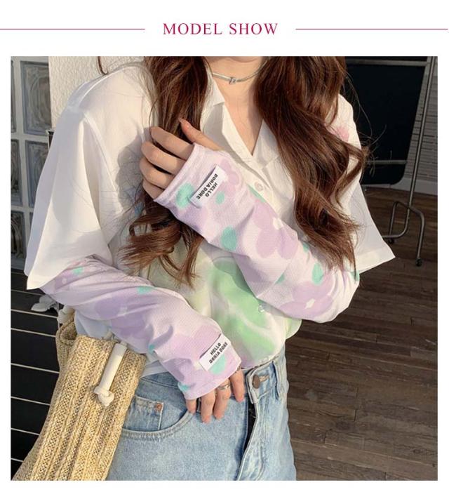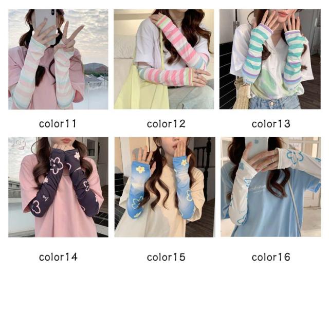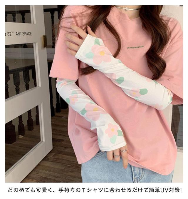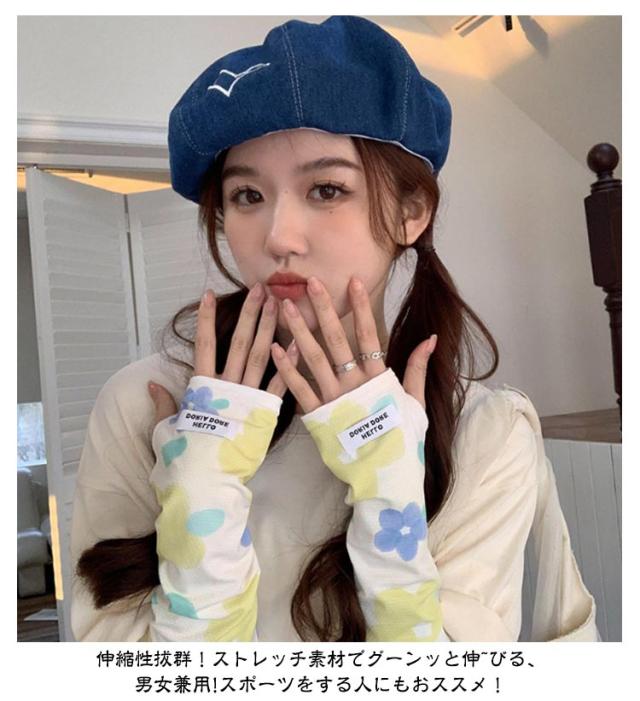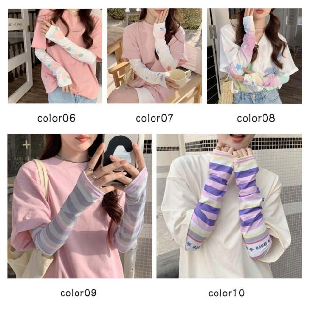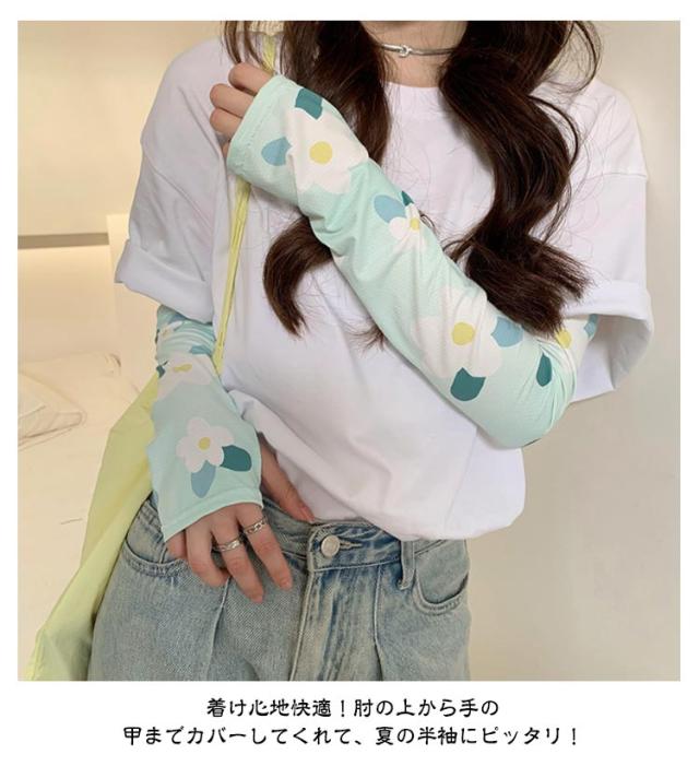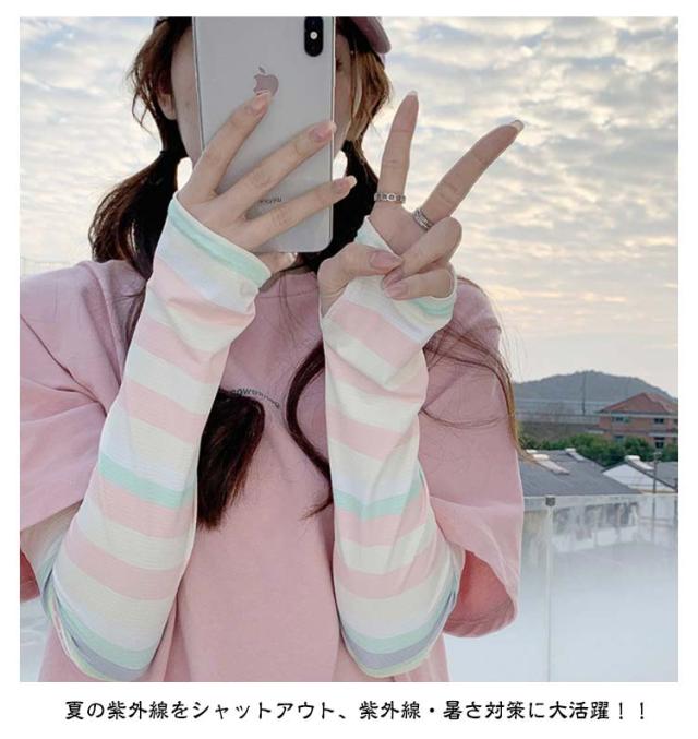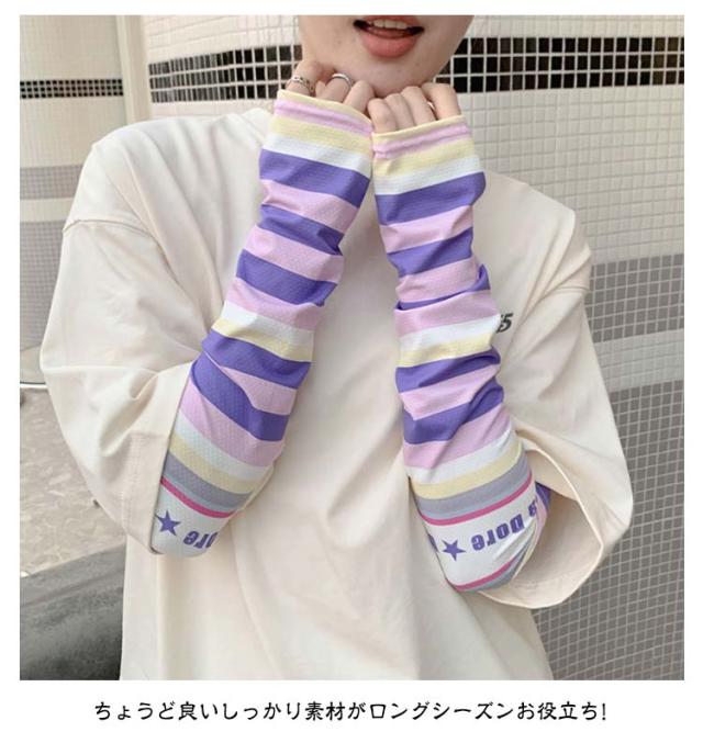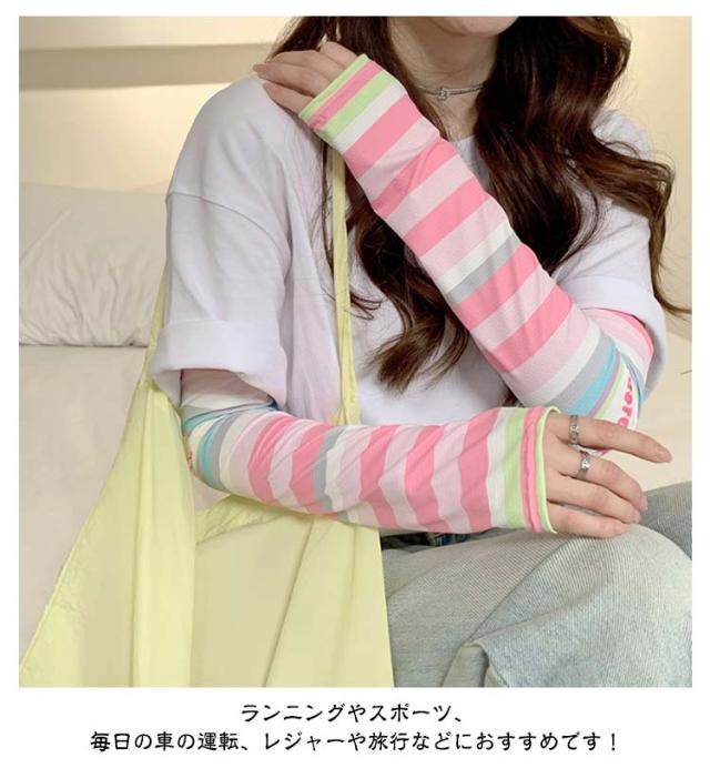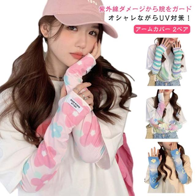 2ペア ずれない 指穴付き 涼しい 冷感 2ペア 可愛い レディース ロング アームカバー ボーダー 通気性 柄 指出し 花 紫外線対策 UVカット スマホ 指なし ゆったり ひんやり スポーツ 自転車 アウトドア 通勤 通学