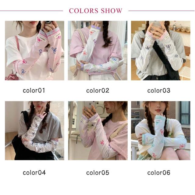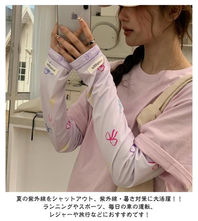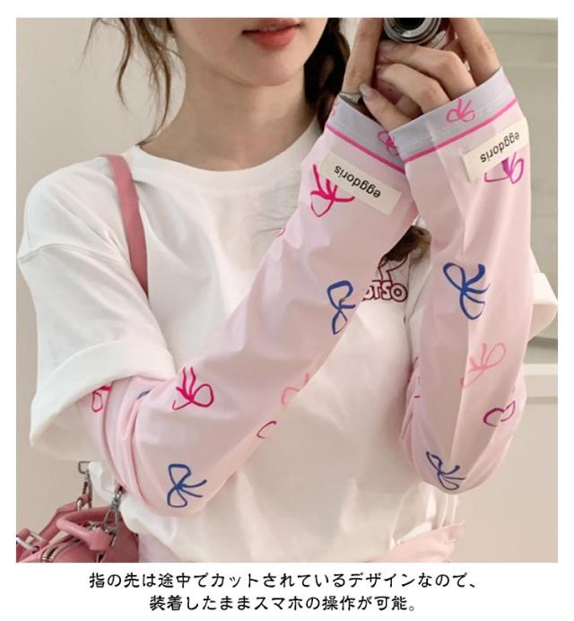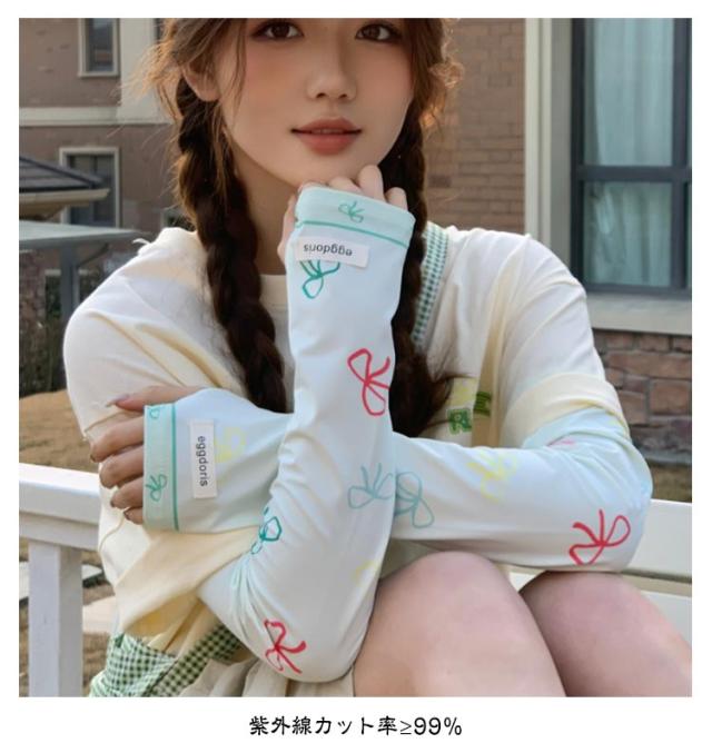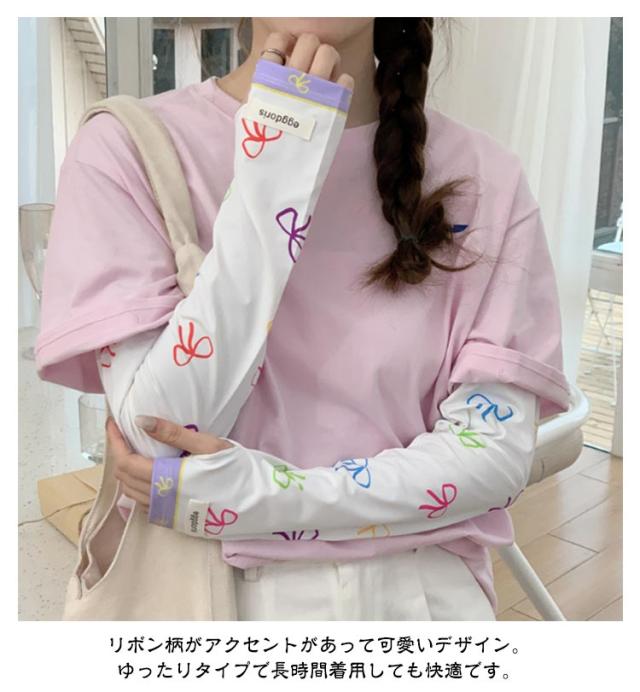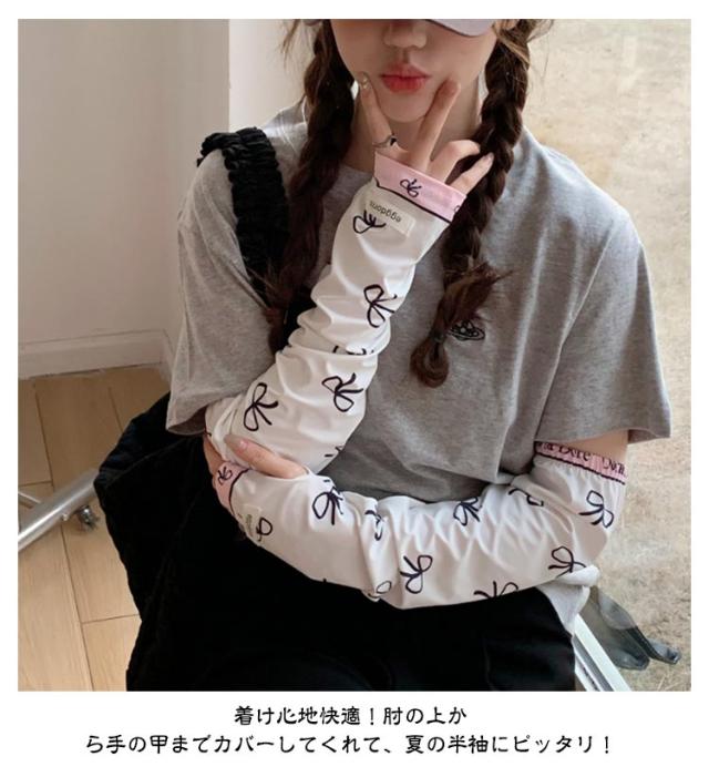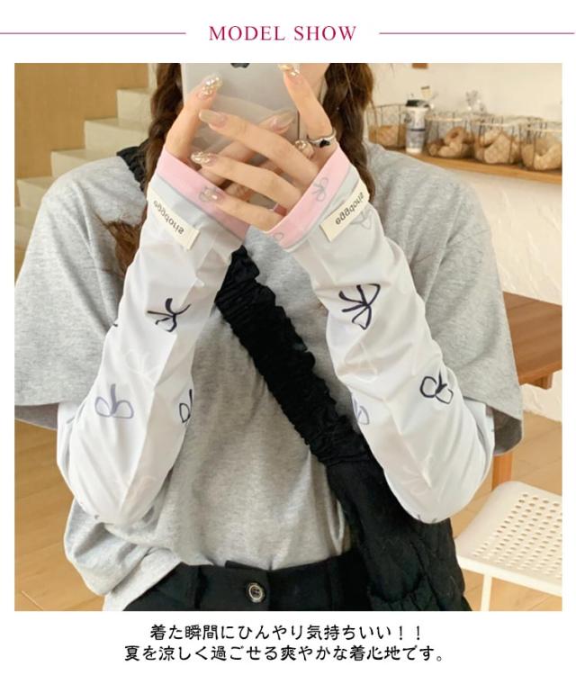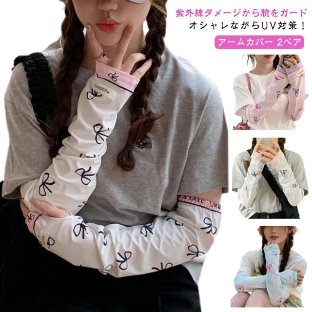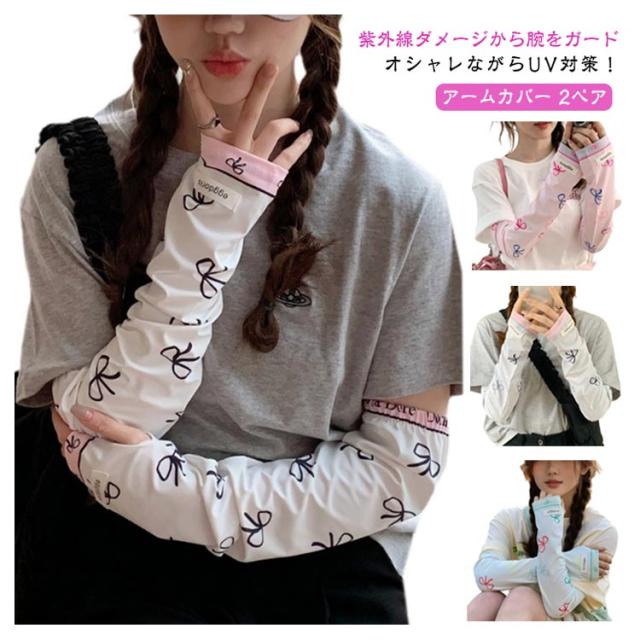冷感 2ペア ロング 涼しい 紫外線対策 UVカット率?99% レディース ずれない 可愛い 2ペア アームカバー リボン 柄 通気性 ひんやり 幅広 UVカット スマホ 指なし 指出し ゆったり 自転車 通勤 通学 お出かけ 春 夏