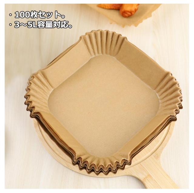 エアフライヤー紙 エアフライヤーシート クッキングシート ノンフライヤー用紙 エアフライヤー紙 3-5L適用 茶色 内径16.5cm 業務用 100枚 耐熱 耐油 天ぷら敷紙 油紙 揚げ物 ケーキ キッチン専用