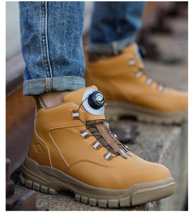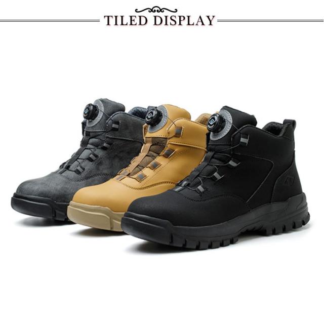 安全靴 ダイヤル式 安全スニーカー 作業靴 鋼鉄先芯 先芯入り ハイカット メンズ シューズ 防滑 靴 紐なし 現場 作業用 ワークブーツ ワークシューズ セーフティ 仕事靴