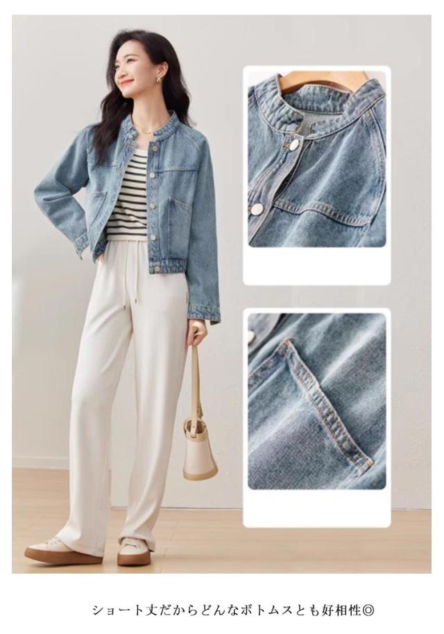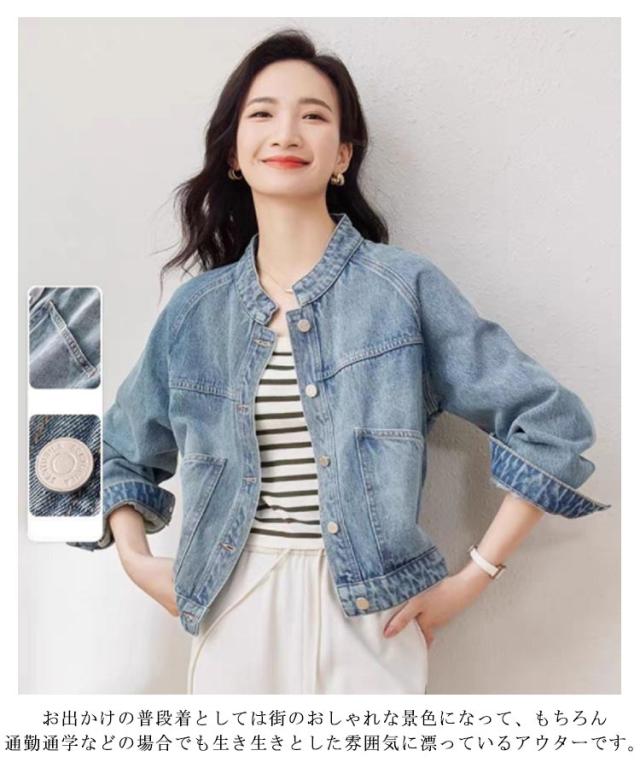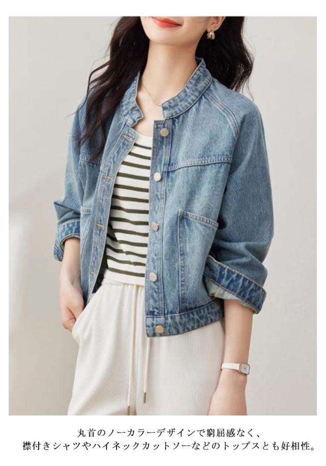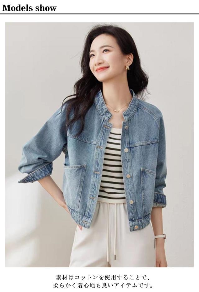 ショート丈 デニムジャケット おしゃれ 春 Gジャン ゆったり ジージャン デニム ジャケット ノーカラーデニムジャケット 長袖 春 アウター ショート 羽織り 大人 トップス 女性 大きいサイズ カジュアル 秋 可愛い 送料無料