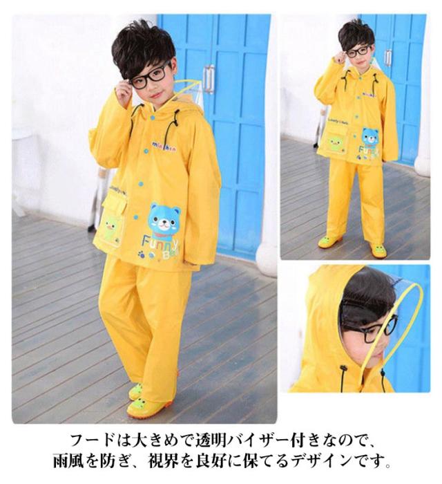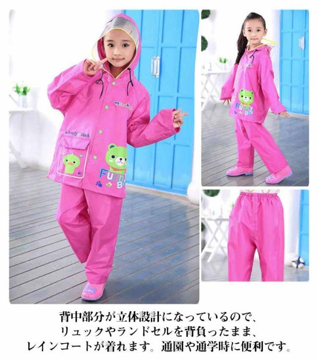 【ランドセル対応】 レインコート キッズ セパレート 上下セット レインウエア レインスーツ パンツ レインコート レイン コート フート付き 透明ツバ セパレート セットアップ レインウェア パンツ式 雨具 カッパ ポンチョ 撥水 子供用