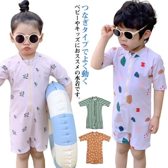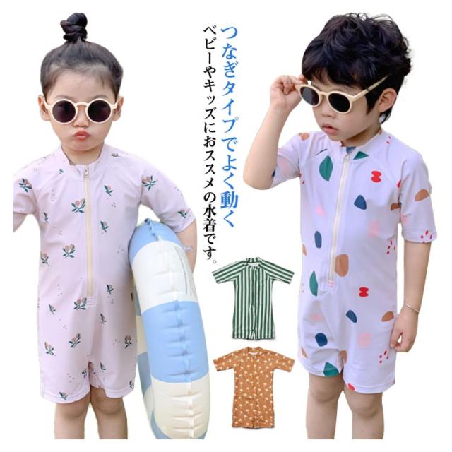 ベビー 水着 ロンパース ラッシュガード キッズ 男の子 水着 子供 オールインワン パンツ ハーフパンツ 帽子 子供用 ベビー水着 UVカット ロンパース 男の子 女の子 スイムロンパース 水遊び プール 子供 みずぎ 80 90 100 110 120 130