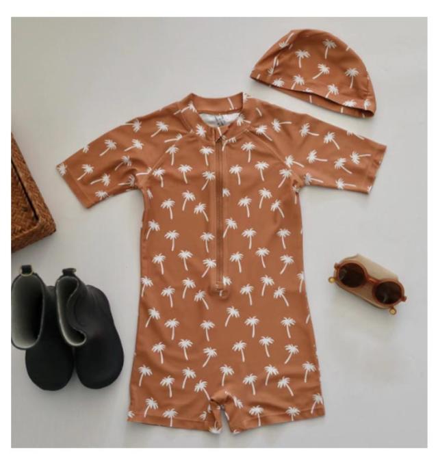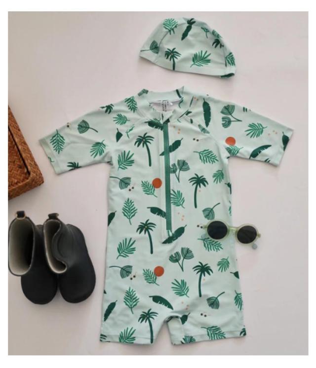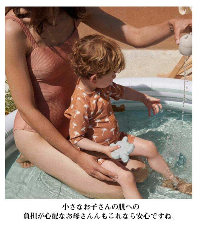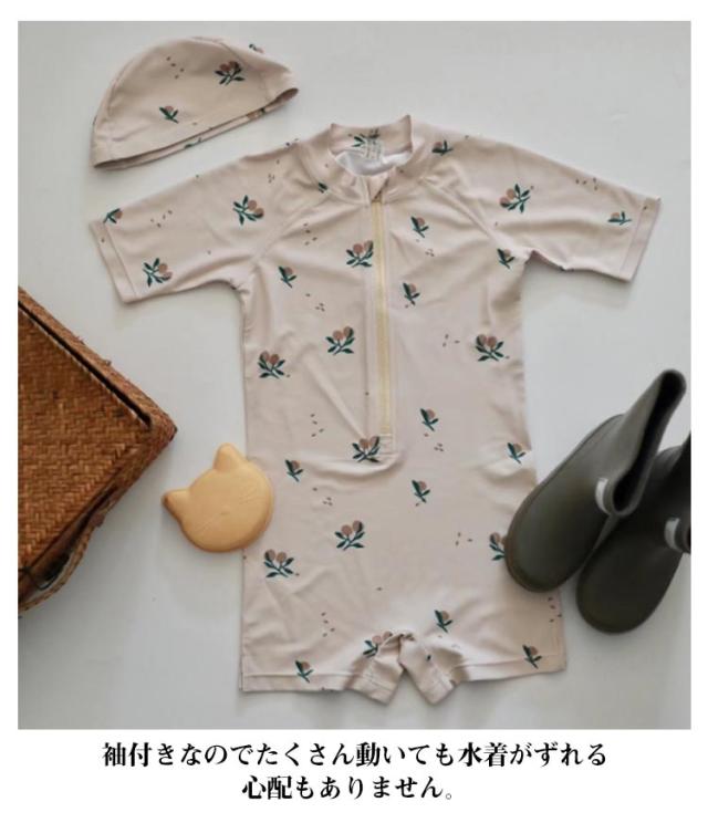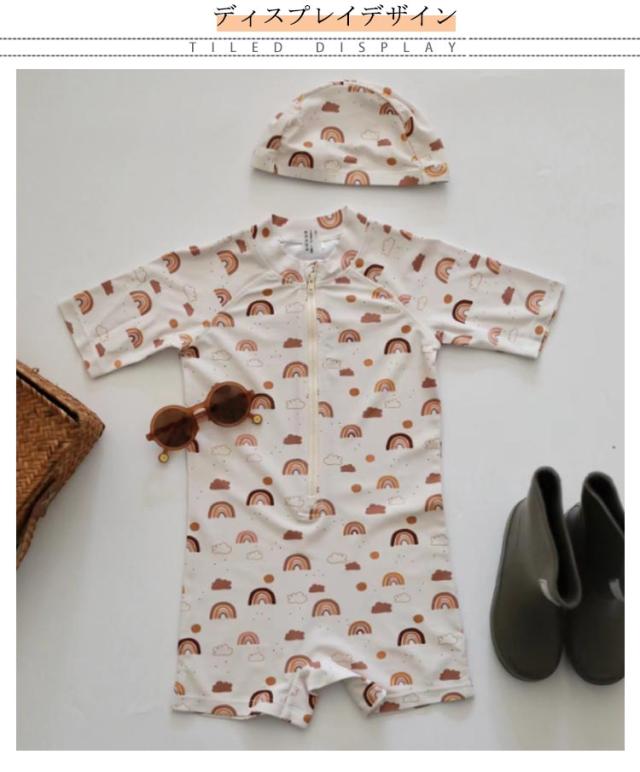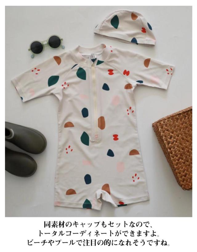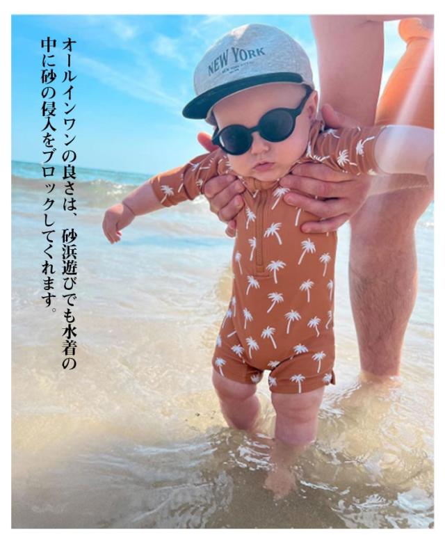 | つなぎタイプでよく動くベビーやキッズにおススメの水着です。 プールや海で目立ちそうなカラーで、とってもおしゃれ。 オールインワンの良さは、砂浜遊びでも水着の中に砂の侵入をブロックしてくれます。 小さなお子さんの肌への負担が心配なお母さんんもこれなら安心ですね。 袖付きなのでたくさん動いても水着がずれる心配もありません。 同素材のキャップもセットなので、トータルコーディネートができますよ。ビーチやプールで注目の的になれそうですね。 自宅での水遊びなどで初めての水遊びを安心して楽しむことができますね。 | |