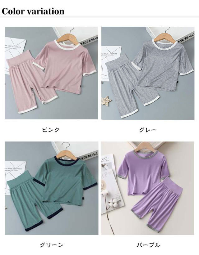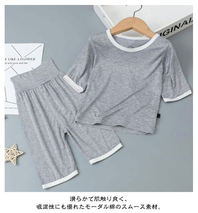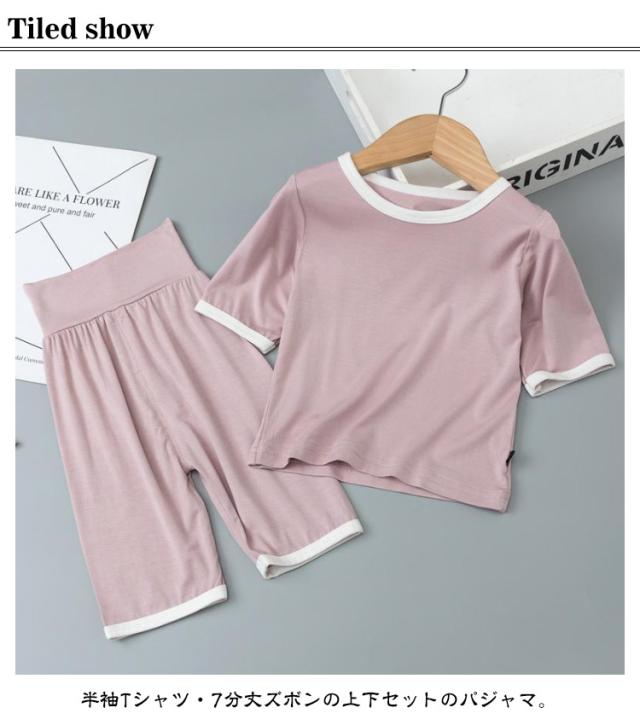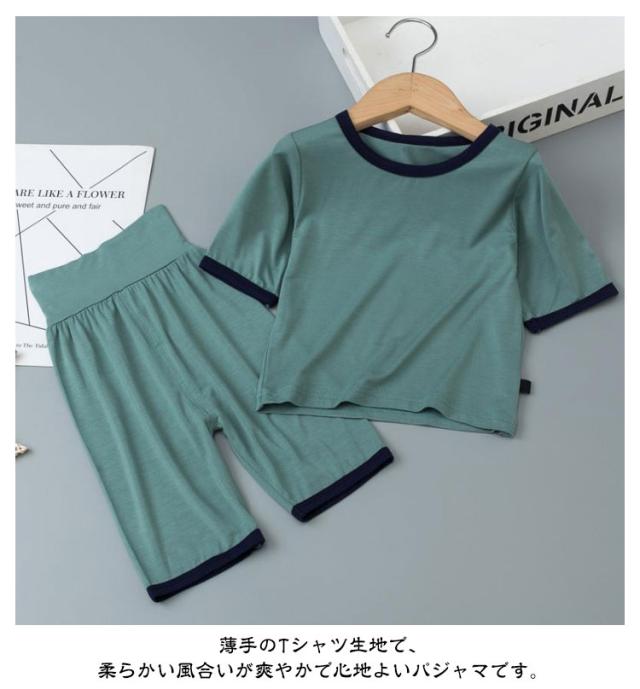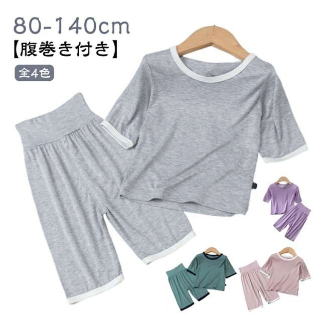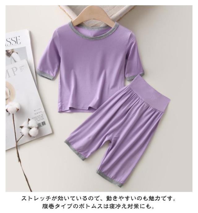 パジャマ キッズ 半袖 男の子 女の子 上下セット 子供パジャマ ルームウェア 夏 薄手 モーダル綿 柔らかく軽い Tシャツ 腹巻付き 7分丈パンツ ベビー セットアップ 寝巻き 部屋着 保育園 幼稚園 80 90 100 110 120 130 140cm