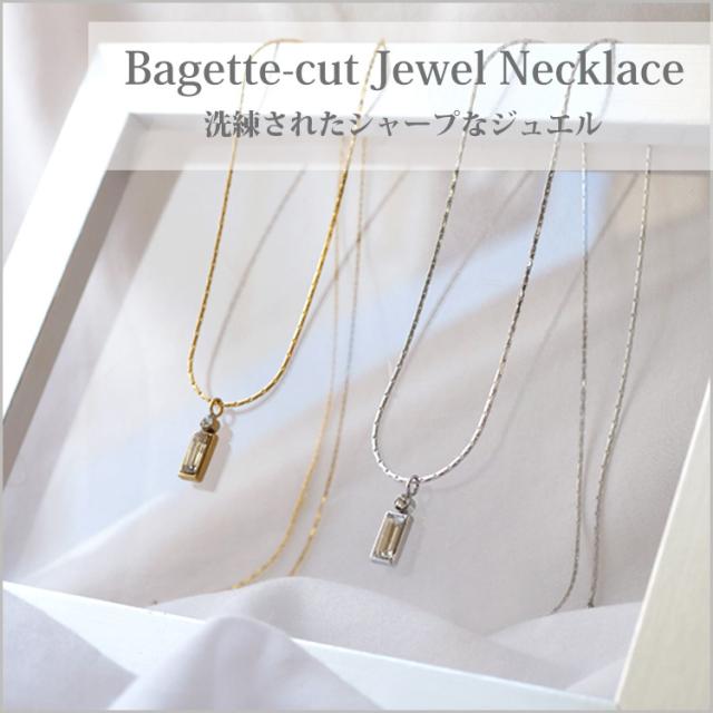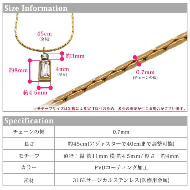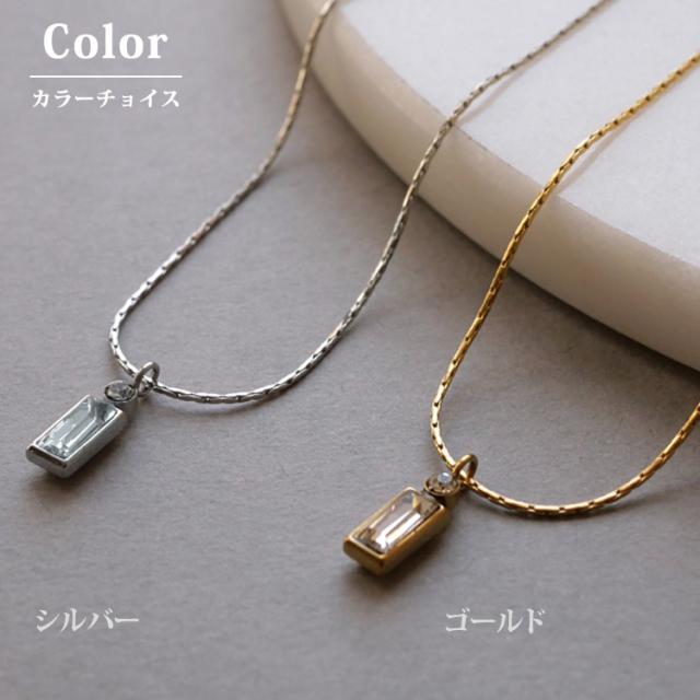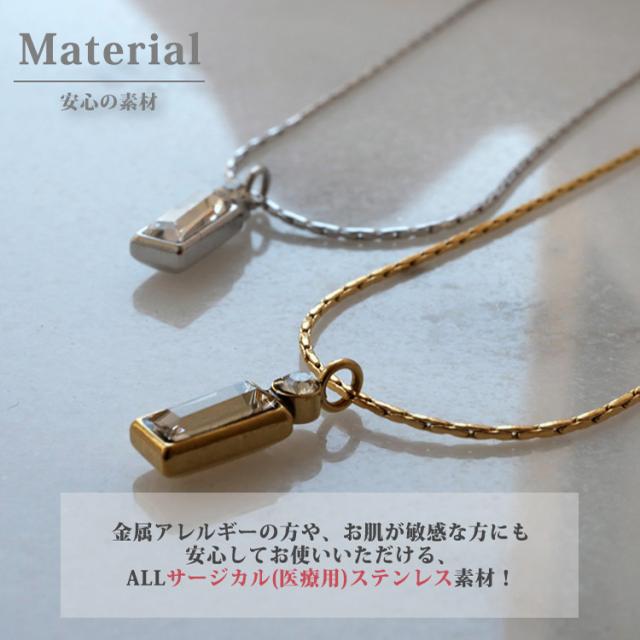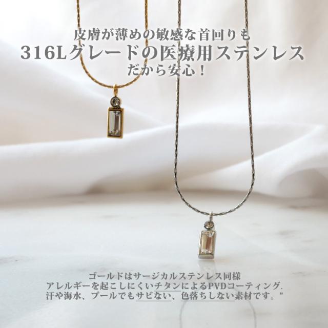 金属アレルギー対応 ステンレスペンダント バゲットカットネックレス 安心 316L ニッケルフリー