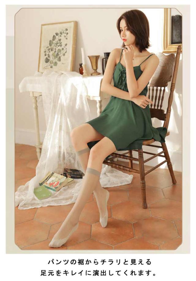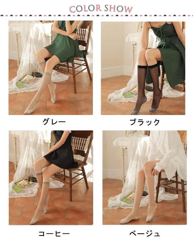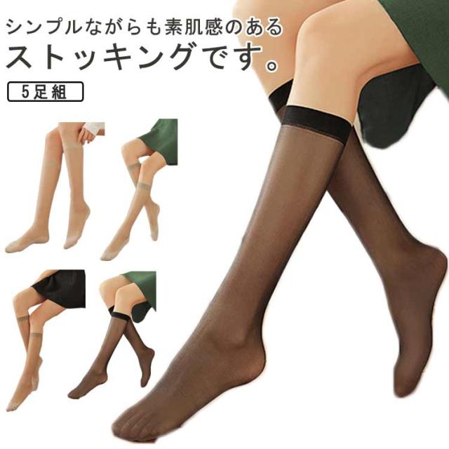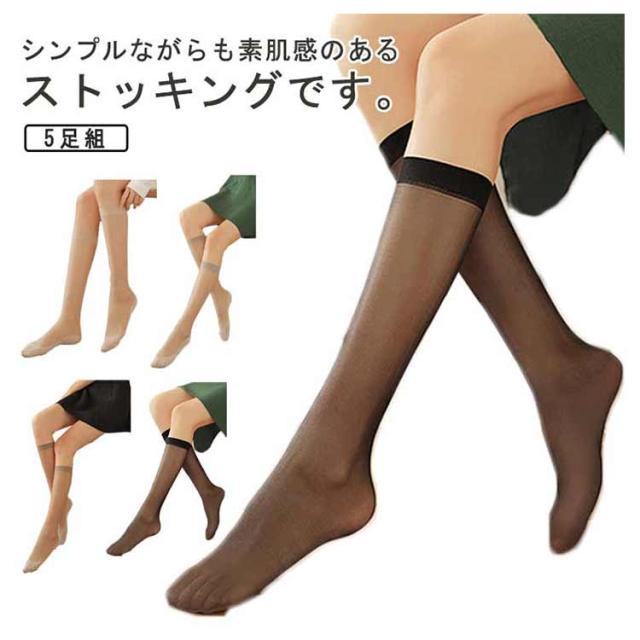 5足組 洗い替え ストッキング レディース 膝下丈 伸縮性 透明感 素肌感 滑り止め 通勤 足底綿 ハイソックス 冷え対策 温活 靴下 ストレッチ性 吸汗速乾 薄手 通気性 オフィス フットカバー