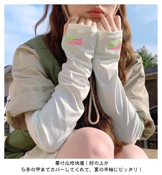 | 紫外線ダメージから腕をガード オシャレながらUV対策! アームカバー 2ペア 紫外線カット率?99% 着た瞬間にひんやり気持ちいい!!夏を涼しく過ごせる爽やかな着心地です。 配色の英字ロゴがアクセントがあって可愛いデザイン。 ゆったりタイプで長時間着用しても快適です。 体型を拾わずきれいに着られる程よい厚みが特徴。 ちょうど良いしっかり素材がロングシーズンお役立ち! 伸縮性拔群!ストレッチ素材でグーンッと伸~びる、男女兼用!スポーツをする人にもおススメ! 指の先は途中でカットされているデザインなので、装着したままスマホの操作が可能。 着け心地快適!肘の上から手の甲までカバーしてくれて、夏の半袖にピッタリ! どのカラーでも可愛く、手持ちのTシャツに合わせるだけで簡単UV対策! 夏の紫外線をシャットアウト、紫外線・暑さ対策に大活躍!!ランニングやスポーツ、毎日の車の運転、レジャーや旅行などにおすすめです! | |