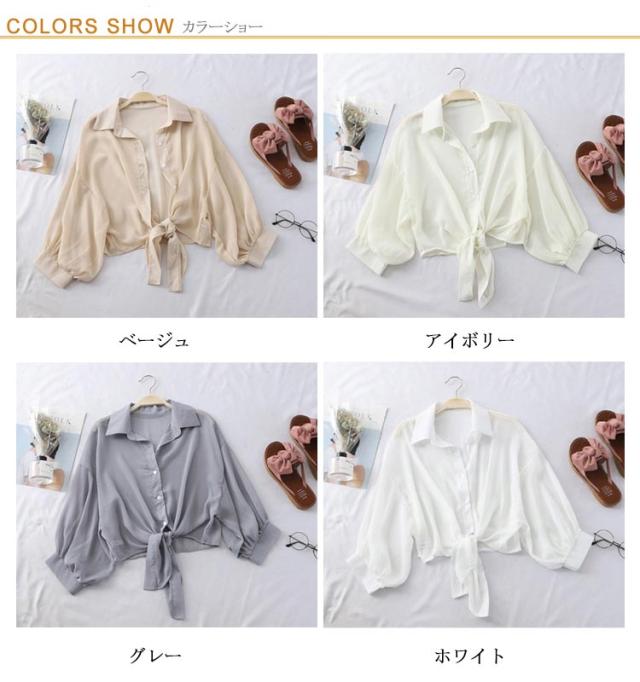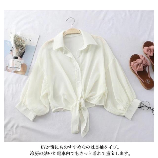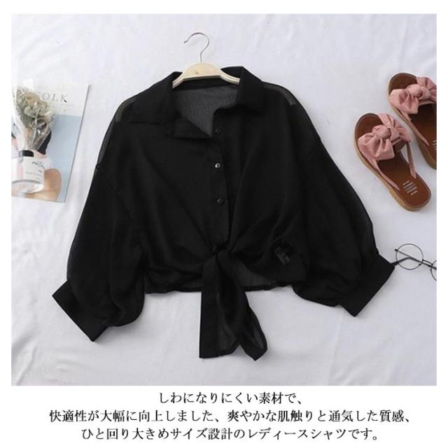 | S-3XL!紫外線対策、冷房対策に、薄手のシアーシャツ。 軽くて風に揺れる薄手の生地なので、夏の暑い日でも抵抗なく着られます。 UV対策にもおすすめなのは長袖タイプ。冷房の効いた電車内でもさっと着れて重宝します。 しわになりにくい素材で、快適性が大幅に向上しました、爽やかな肌触りと通気した質感、ひと回り大きめサイズ設計のレディースシャツです。 シアー感とサラッとした触り心地でこれからの季節にぴったりです | |