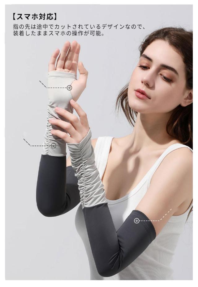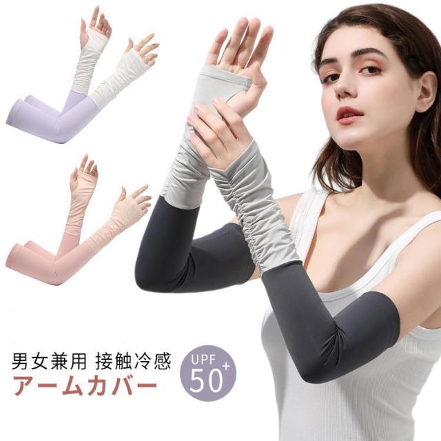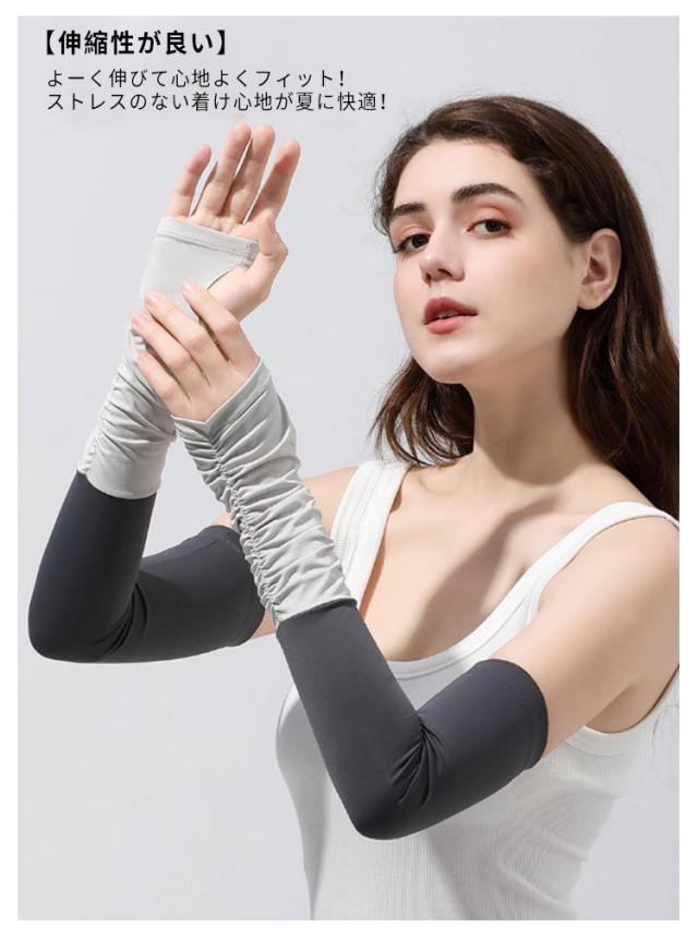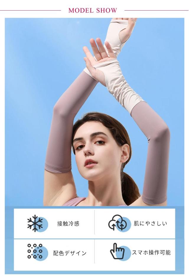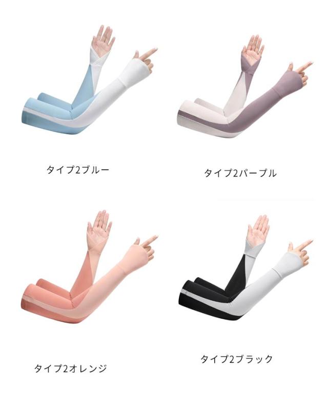 指穴付きアームカバー アームカバー 手袋 接触冷感 レディース UPF50+ 冷感アームカバー 指出し 指なし ロング おしゃれ UVカット 自転車 メンズ 洗える 配色 可愛い アウトドア 運転 対応 スポーツ ゴルフ UV 紫外線 日焼け対策 日焼け止め 男女兼用 滑り止め スマホ