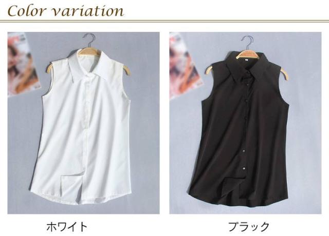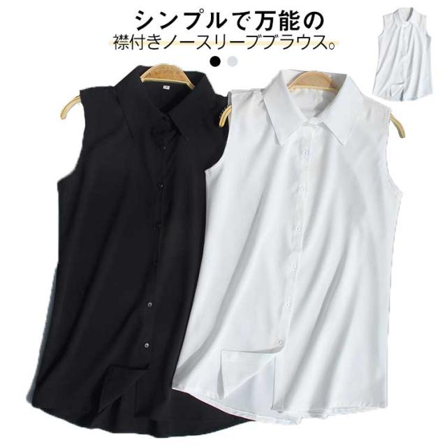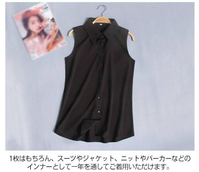 Yシャツ スーツインナー 襟付きブラウス シフォンシャツ 白 ブラウス 袖なし 夏 黒 レディース 薄手 夏物 タンクトップ シャツブラウス とろみシャツ OL 通勤 シンプル 無地 ノースリーブ