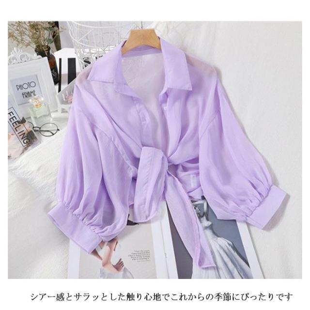 | S-3XL!紫外線対策、冷房対策に、薄手のシアーシャツ。 軽くて風に揺れる薄手の生地なので、夏の暑い日でも抵抗なく着られます。 UV対策にもおすすめなのは長袖タイプ。冷房の効いた電車内でもさっと着れて重宝します。 しわになりにくい素材で、快適性が大幅に向上しました、爽やかな肌触りと通気した質感、ひと回り大きめサイズ設計のレディースシャツです。 シアー感とサラッとした触り心地でこれからの季節にぴったりです | |