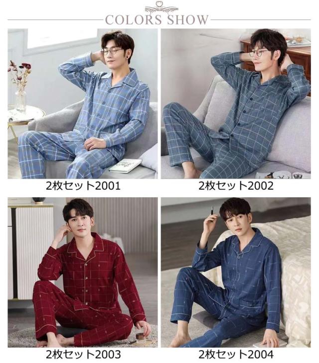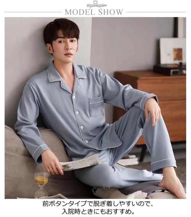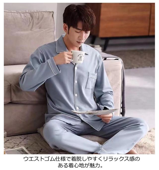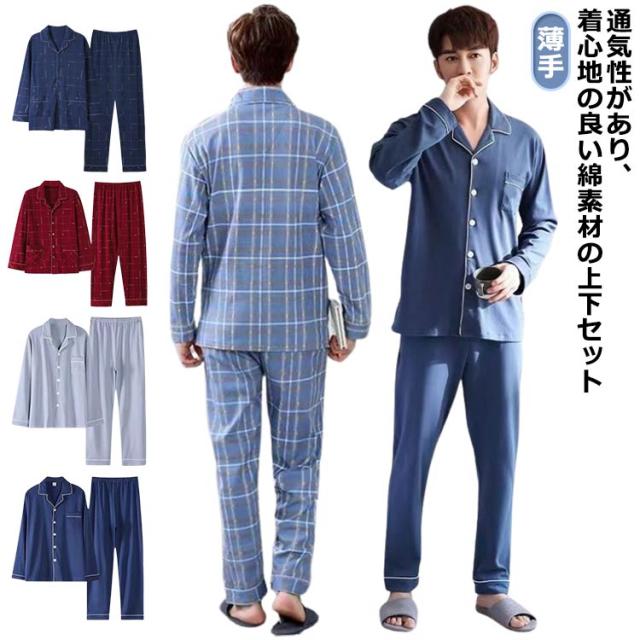 夏 綿 メンズ 秋 ルームパンツ 薄手 2点セット 長ズボン ルームウェア 春 パジャマ メンズ 上下セット 長袖 パジャマ パジャマ 夏 春秋 前開き 男性 紳士 部屋着 寝巻き ナイトウェア 入院 ルームウェア