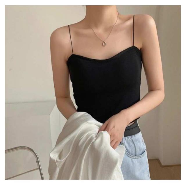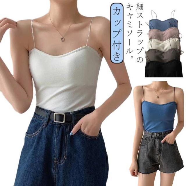 細ストラップ キャミソール タンクトップ レディース 無地 夏 カップ付き キャミソール ブラトップ 送料無料 インナー 春 極細 肩紐 インナーキャミソール 下着 送料無料 シンプル かわいい パッド入り
