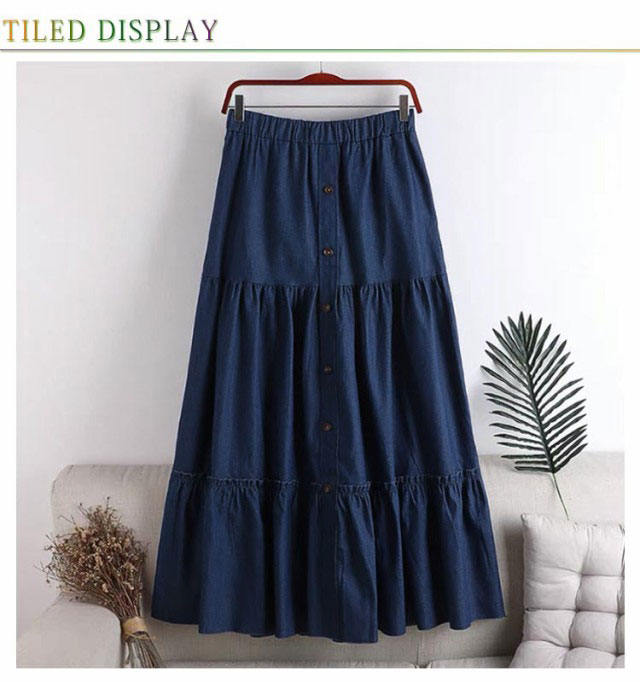 | 歩く度に揺れるティアードシルエットのデニムスカート。 三段階ギャザーでトレンドライクな着こなしに! 腰回りはスッキリしていて広がり過ぎない。 裾に向かってボリューム感が出る形で体型カバー効果も◎ ウエストは総ゴム仕様でイージーな穿き心地が叶います。 綺麗めでもカジュアルにも使える優秀なアイテム。 シンプルなトップスと合わせても存在感がある。 | |