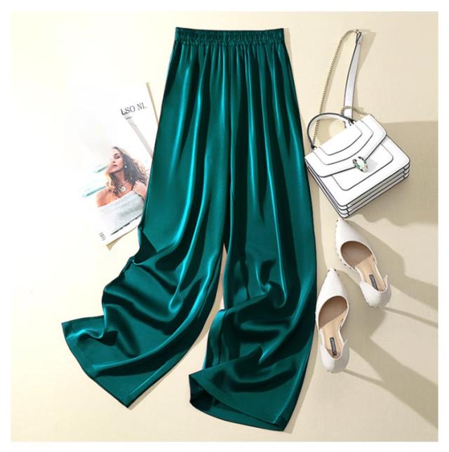 夏 ワイドパンツ シルクリアル 無地 薄手 ボトムズ ウエストゴム レディース サマー ロングパンツ サテンパンツ シンプル 春 サテンパンツ 着やせ 光沢感 ハイウエスト 着痩せ 美脚 通勤 無地