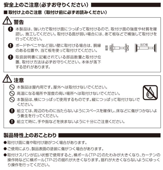 [3m] 170cm:約10kg(補強プレート無の場合約4.5kg)、〜240cm:約7kg(補強プレート無の場合約3kg)、〜300cm:約4kg(補強プレート無の場合約1.5kg)