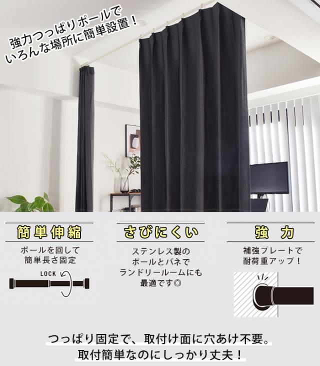 間仕切りや目隠しの取付が簡単にできる、つっぱりカーテンレールです。