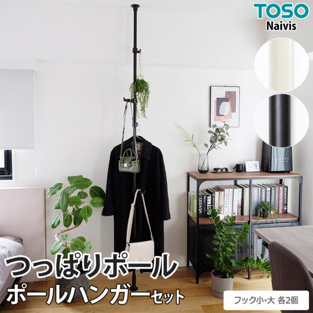突っ張り棒 Naivis ポールハンガーセット フック大小各2個 約205〜275cm伸縮 TOSO トーソー 強力 ハンガーラック おしゃれ つっぱり コート掛け 収納 省スペース