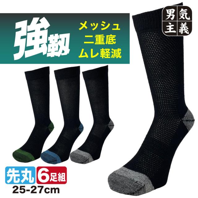 靴下 メンズ 夏 強い 破れにくい 蒸れない 強靭 メッシュ ワークソックス 6足組 二重底 補強 安全靴 作業用 25-27cm