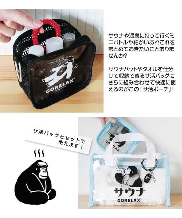 メッシュポーチ ミニ 小物入れ サウナ 銭湯 旅行 ジム 海 プール バッグインバック コスメ入れ 化粧ポーチ 小物入れ マルチポーチ ポケット付き スパポーチ トラベルポーチ プレゼント ギフト ごリラックス サ活ポーチ ブラック 黒 白 ホワイト