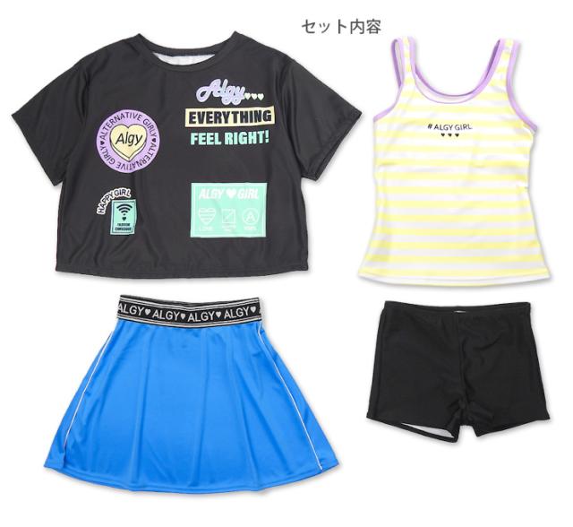 ALGY セパレート水着4点セットアップ キッズ ジュニア 女児 ブラック 130 140 150 160 アルジー 33150369 タンキニ No.sw3568