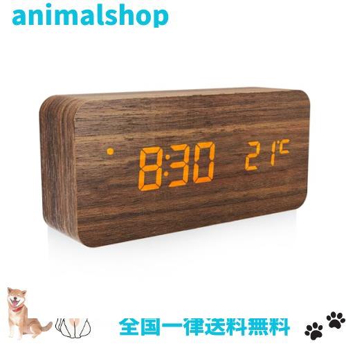 デジタル目覚まし時計 木製置き時計 LED時間表示3目覚まし時計設定 USB給電 き温度検出電子時計、寝室、ベッドサイドテーブル、机、オフ