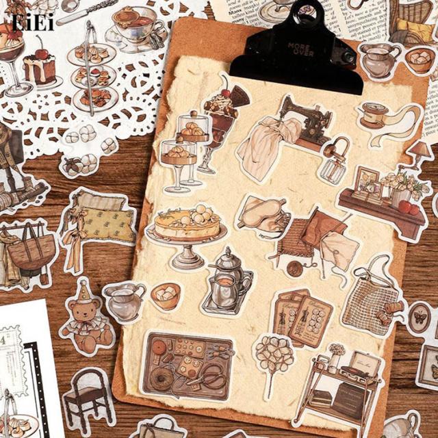 海外ステッカー マステシール ブラウン系 40枚 透ける 大人 海外 コラージュ 素材 生活 雑貨 家具 小物 椅子 机 ミシン 洋裁 裁縫 編み物 燭台 スイーツ 可愛い 珍しい ビンテージ アンティーク レトロ 手描き スクラップブッキング おしゃれ 手帳 デコ 日記 DIY