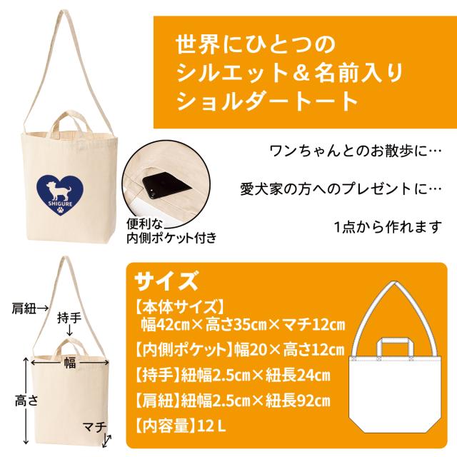 ショルダートートバッグ 内側ポケット付き 愛犬 名前入り 名入れ オーダーメイド ペット お散歩 バッグ かわいい 可愛い ペットグッズ ペット用品 名入れ メモリアル 猫 犬 オリジナル 誕生日 記念日 オーダー プレゼント 【ラッピング資材同梱可】 メール便可1