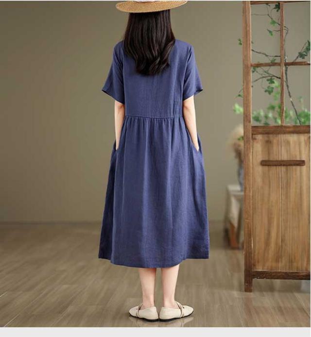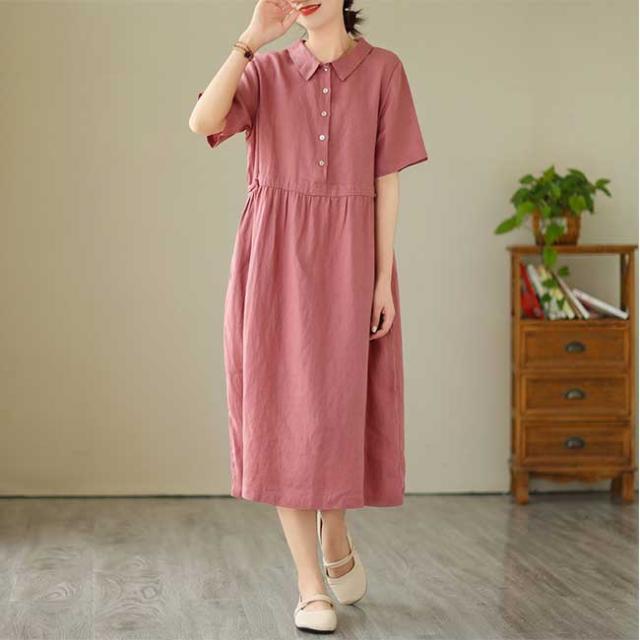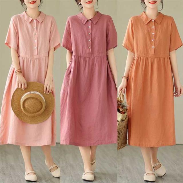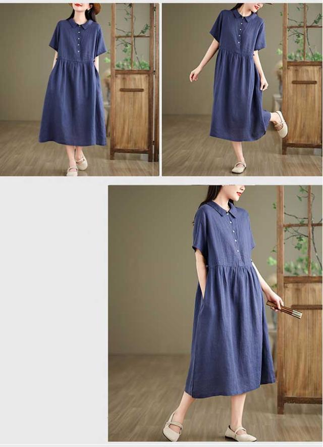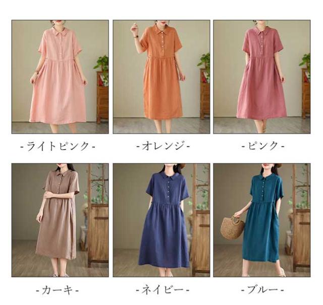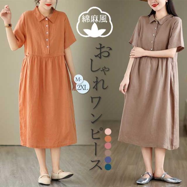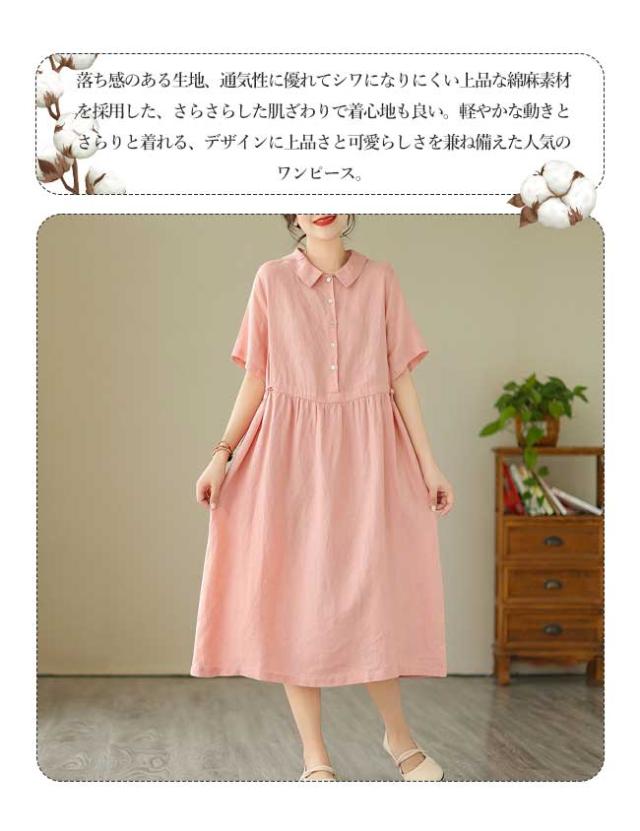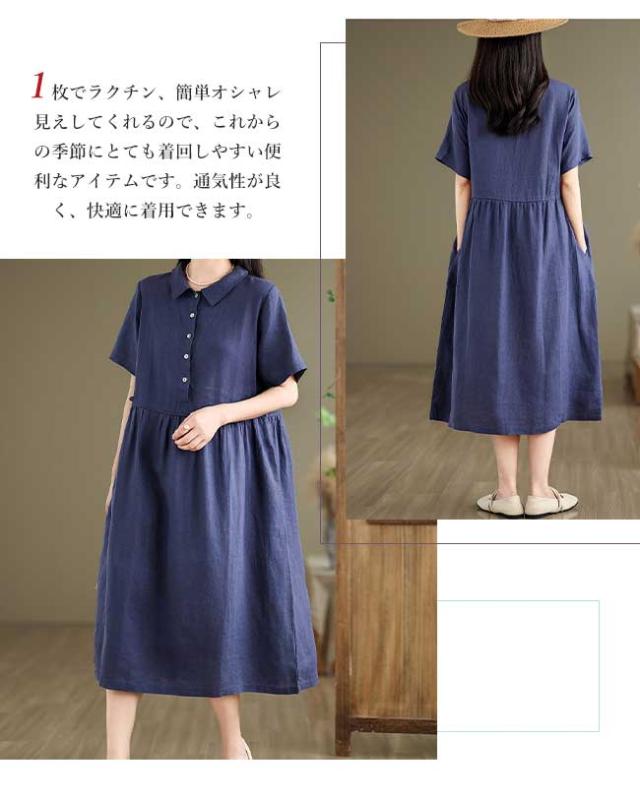 ロングワンピース 綿 麻 レディース マキシ丈ワンピース リネン 通気性 快適 綿麻混 半袖ワンピース ビッグシルエット 着痩せ ゆったり 体型カバー カジュアル 無地