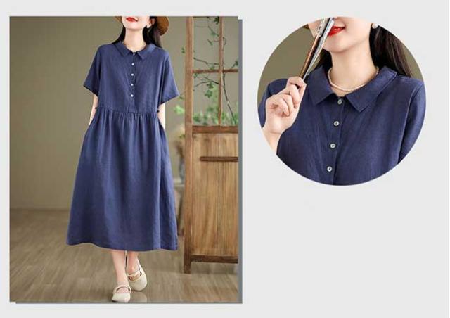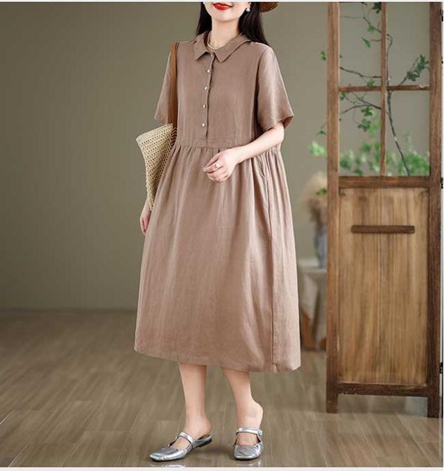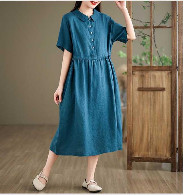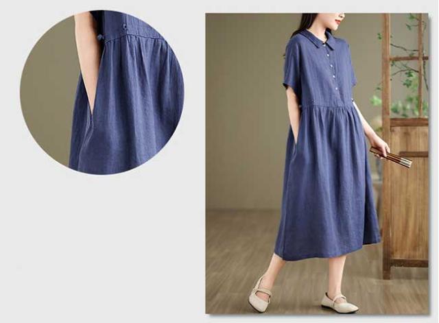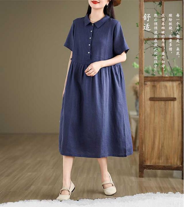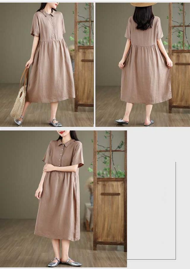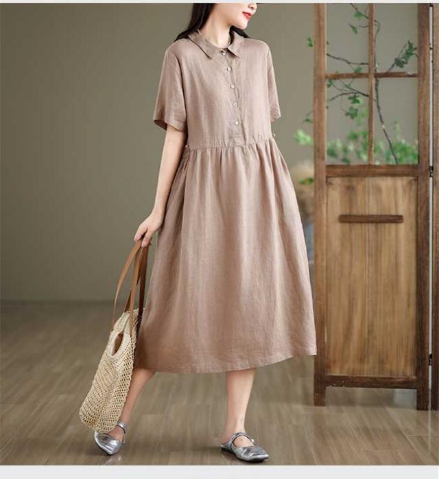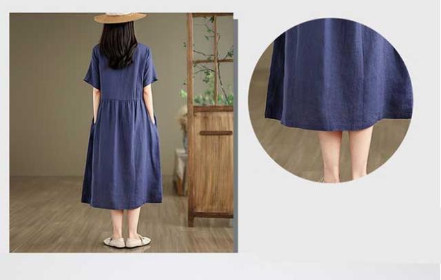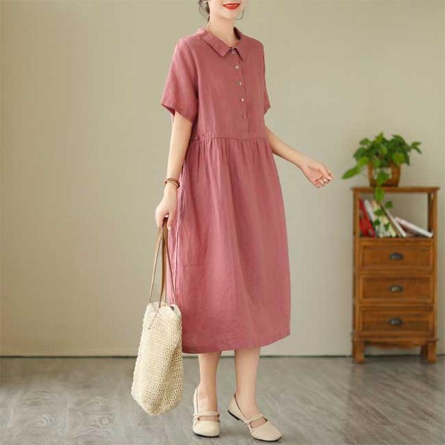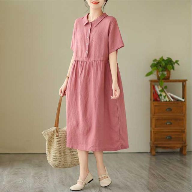 ロングワンピース 綿 麻 レディース マキシ丈ワンピース リネン 通気性 快適 綿麻混 半袖ワンピース ビッグシルエット 着痩せ ゆったり 体型カバー カジュアル 無地