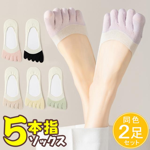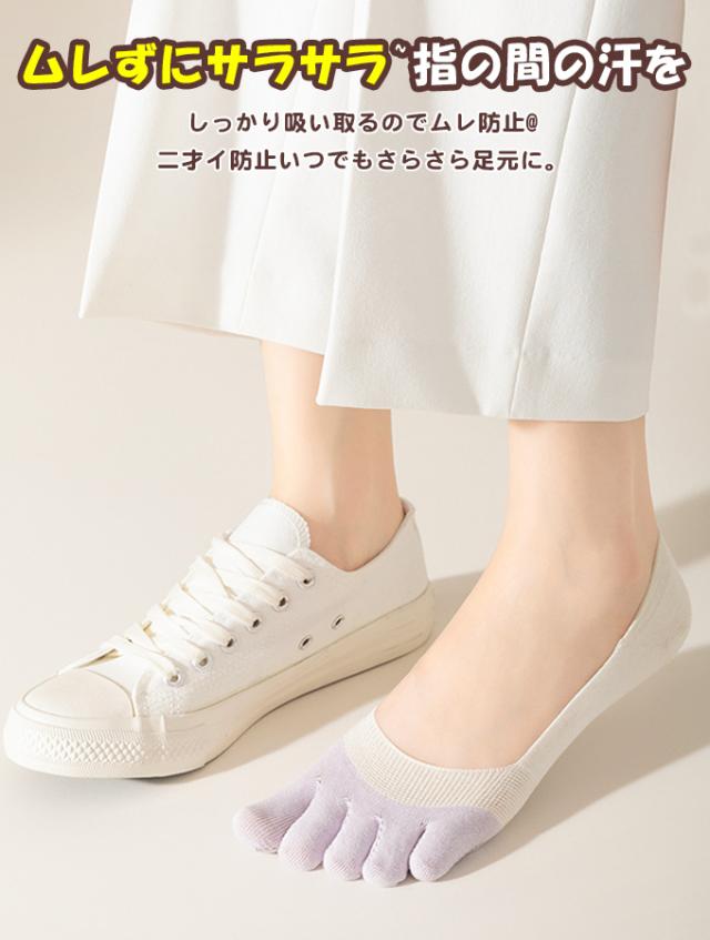 5本指バイカラーソックス レディース 通気性 蒸れない カバーソックス 浅履き 靴下 ソックス 5本指