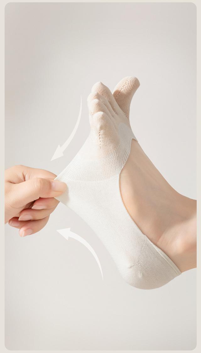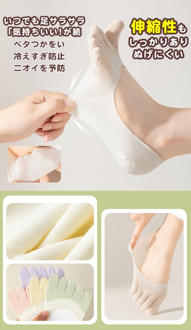 5 本指なので指の間もくっつかずサラサラ。汗をかいてもベたつかなくて気持ちよく過ごせる。