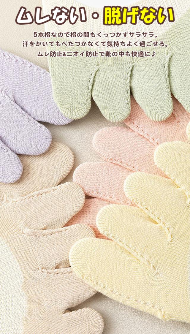 ムレずにサラサラ~指の間の汗をしっかり吸い取るのでムレ防 匂い防止いつでもさらさら足元に。