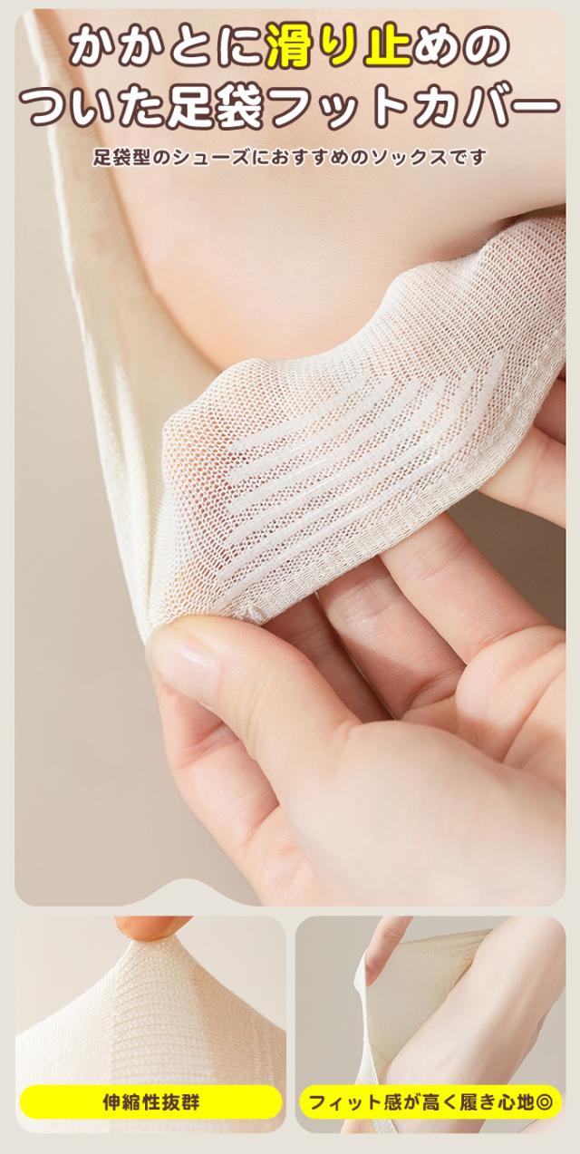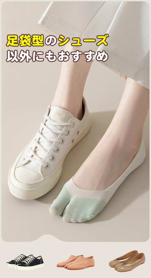 足袋デザインのシューズにピッタリな、浅履きのカバーソックス。