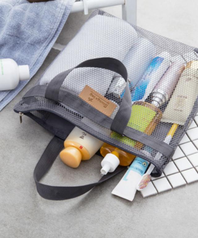 【軽量/メンズ・レディース兼用/中身が一目で分かるシアーメッシュ素材スパバッグ/ハンドバッグ】