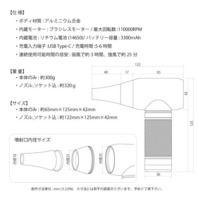 【内蔵モーター】ブラシレスモーター/最大回転数:110000PRM
