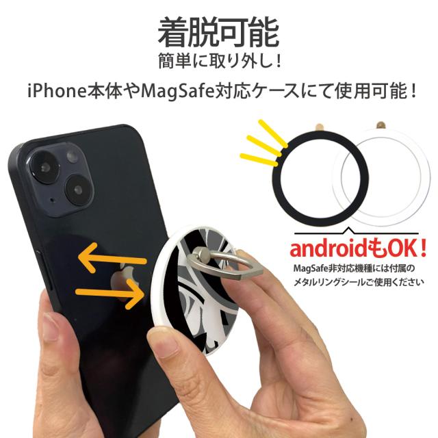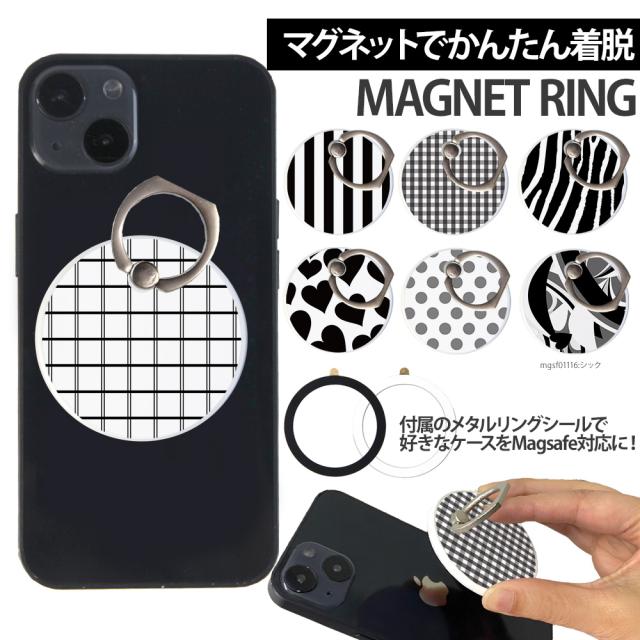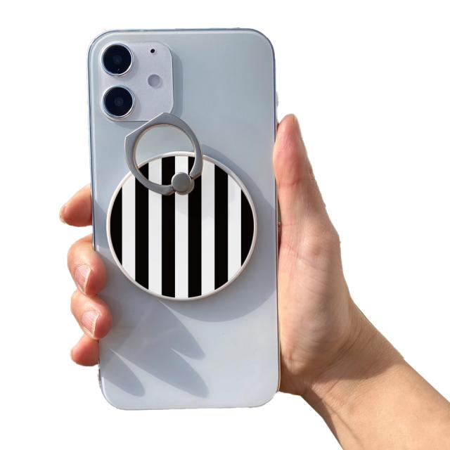 スマホリング MagSafe対応 メタルリング付き 落下防止 片手操作 magsafe デザイン シック 携帯 リング ホルダー 指 かけ 薄型 マグネット 磁石 フィンガーリング iPhone15リング ゼブラ ストライプ モノクロ チェック 180度 360度 回転 マグセーフ