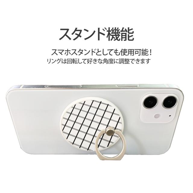 スマホリング MagSafe対応 メタルリング付き 落下防止 片手操作 180度 360度 回転 マグセーフ magsafe デザイン シック 携帯 リング ホルダー 指 かけ 薄型 マグネット 磁石 フィンガーリング iPhone15リング ゼブラ ストライプ モノクロ チェック メタルリングシール付き magsafe対応 スマホリング 送料無料 千鳥格子 ハート マーブル ドット ギンガムチェック