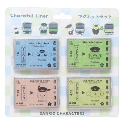 「サンリオキャラクターズ 磁石 マグネット 4Pセット キャラフルライナー 切符 サンリオ キャラクター グッズ メール便可」