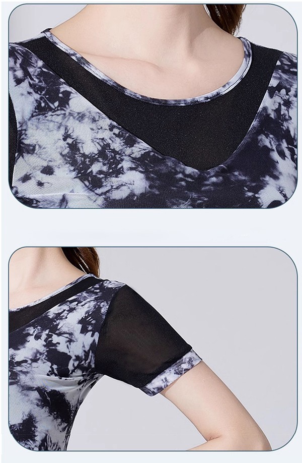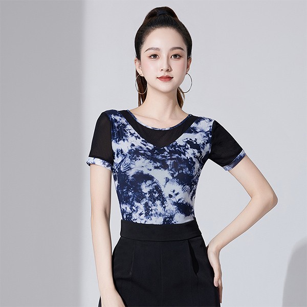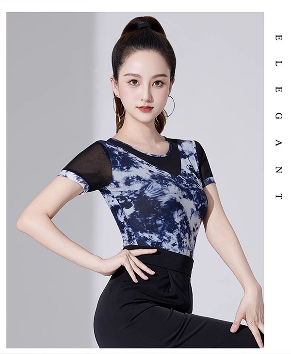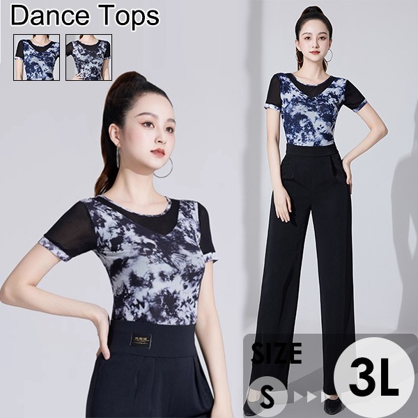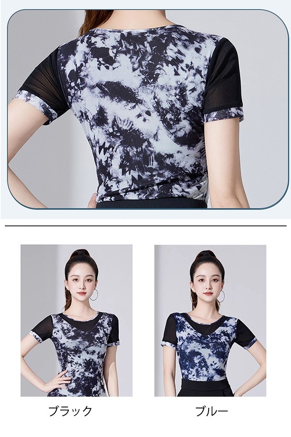 社交ダンス衣装 トップス ラテン ダンストップス ダンスウェア ダンス用ブラウス ストレッチ着 ステージ衣装 舞台 透け感 セクシー 半袖 ラテン モダン コーラス衣装 大きいサイズ dm141l9l9m5