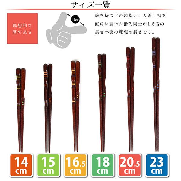 「商品名」三点支持箸 右利き用 23cm/20.5cm/18cm/16.5cm/15cm/14cm