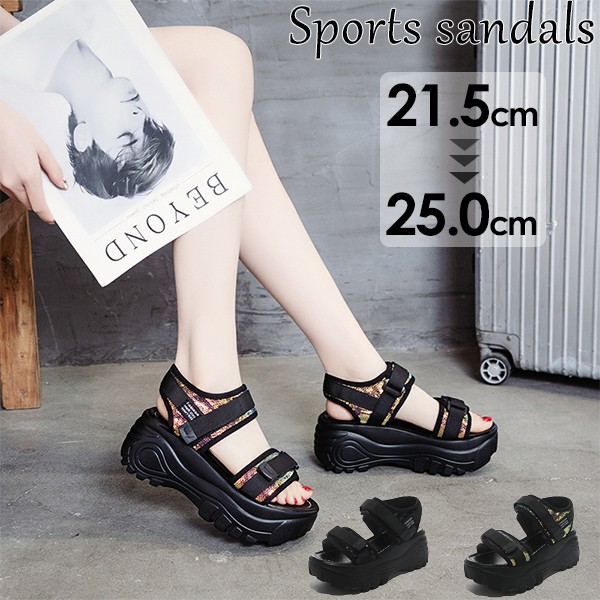 スポーツサンダル 厚底 レディース ヒール7cm ベルト コンフォート 歩きやすい 軽量 美脚効果 スポサン 厚底サンダル ビーチサンダル 厚底靴 カジュアル 夏 ei039l9l9m5