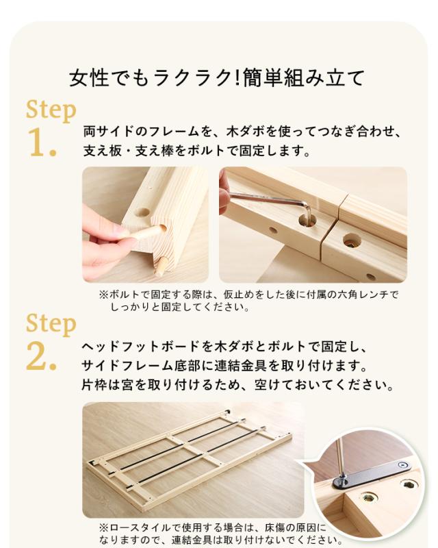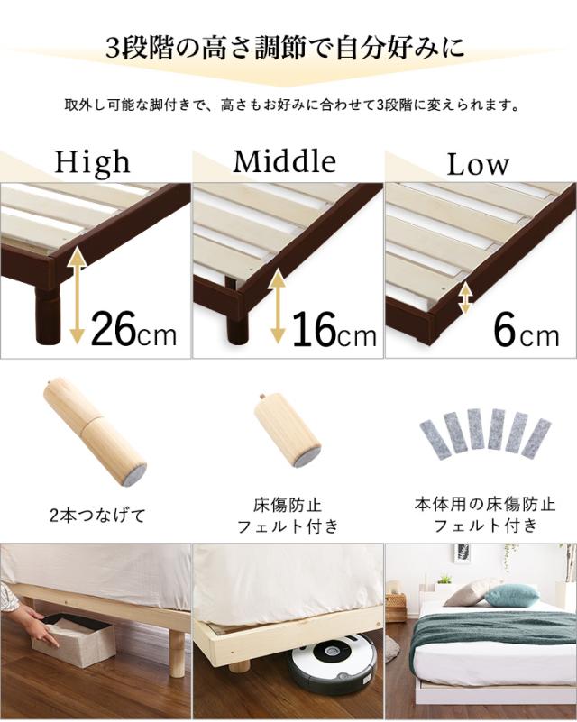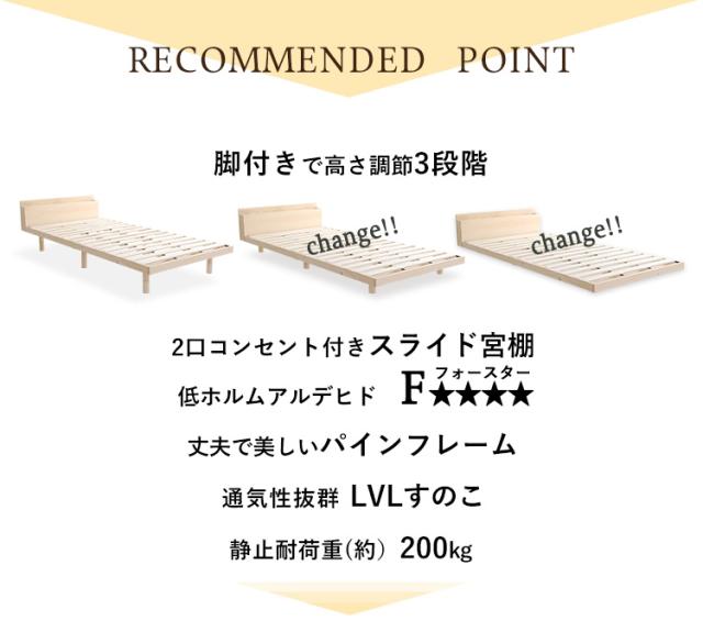すのこベッド シングル 宮付き ベッド宮セット ベッドフレーム シングルベッド ロータイプ コンセント付き 木製 天然木 パイン材 ナチュラル 白 ホワイト LVL LVLすのこ lilitta(リリッタ) 98×209cm 3色対応