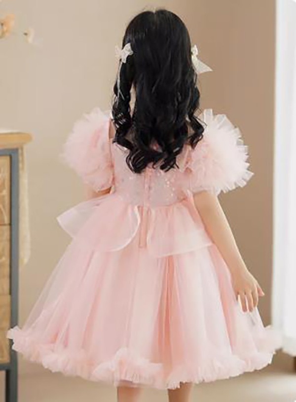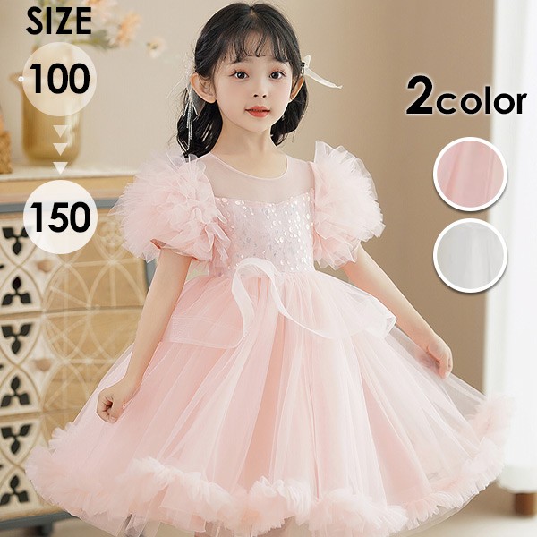 ワンピース 短袖 キッズドレス ピアノ 発表会 子供ドレス キッズ 子ども 可愛い 女の子 女児 ミディ丈ドレス 合唱 披露 ホワイト ピンク 肩出し ステージ衣装 演出 演奏会 音楽会 パーティー 100 110 120 130 140 150