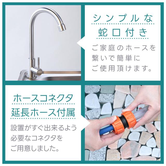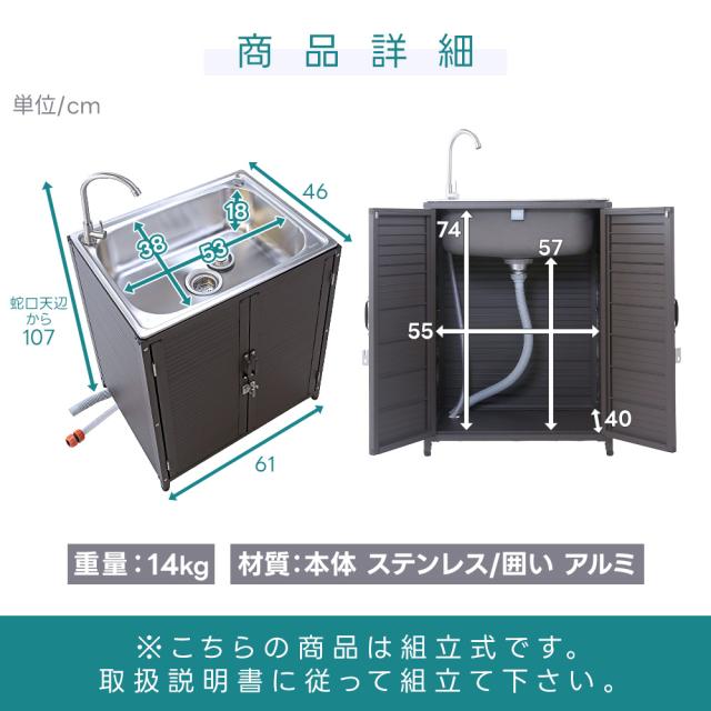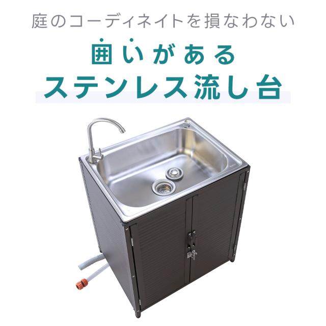 囲い型 ガーデンシンク ステンレス流し台 屋外用 幅61cm 深型 水栓付き 簡易シンク 排水ホース付き 農作業 汚れ物洗い 庭 ガーデニング 簡易 屋外シンク 翌日配送